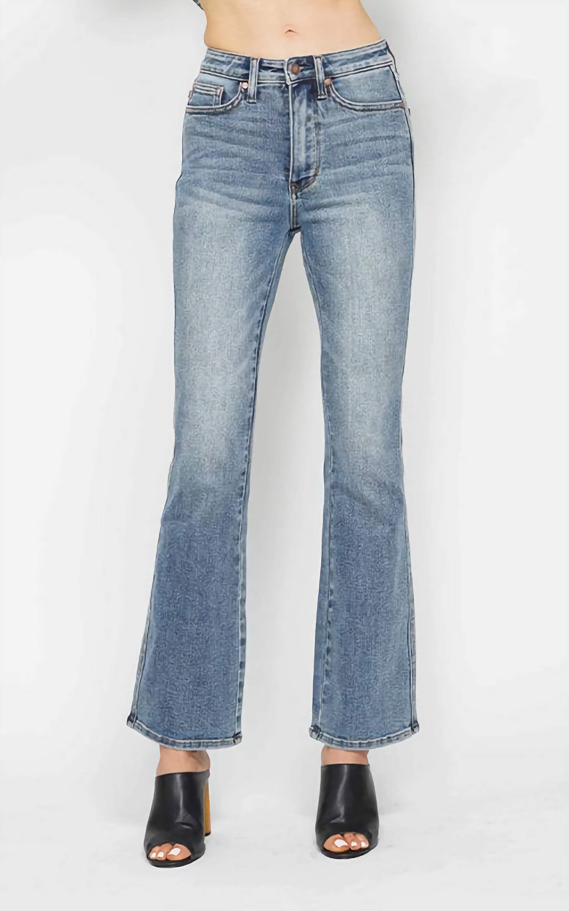 Judy Blue HW Tummy Control Back Pkt Embroidered Bootcut Jeans 88783