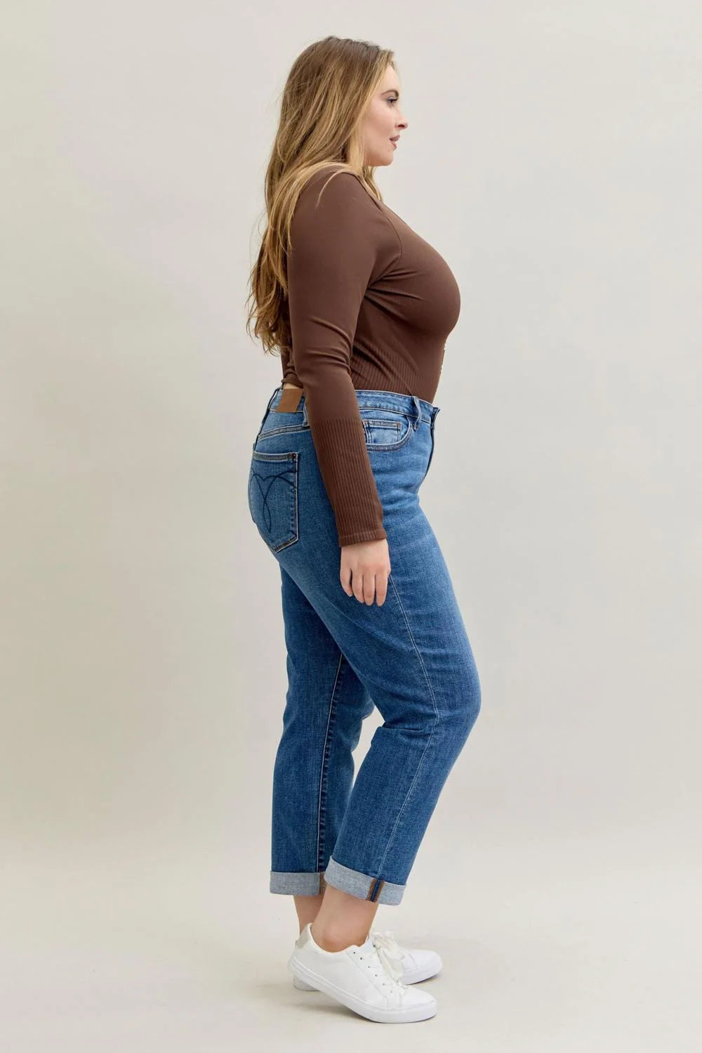 Judy Blue Mid Rise Classic Cuffed Boyfriend Denim Jeans 82685
