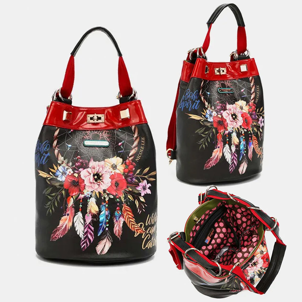 Nicole Lee USA Flower Bohemian Adjustable Strap Backpack Shoulder Bag