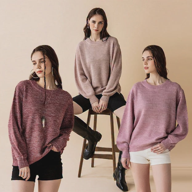 The relaxed fit, long bubble sleeves, and round neckline add a touch of elegance, while the durable, easy-to-clean knit ensures long-lasting wear. Elevate your wardrobe with this versatile and cozy sweater that effortlessly combines fashion and function.
